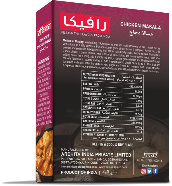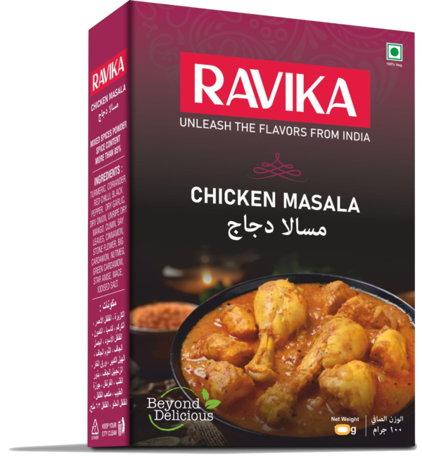 Chicken Masala: A robust blend of spices designed to enhance the flavor of your chicken dishes. This aromatic mix combines the warmth of cumin, the heat of red chili, and the richness of coriander, among other spices, creating a savory and slightly spicy taste. Ideal for making traditional Indian chicken curries, grilled chicken, and more. Elevate your cooking with this essential spice blend.